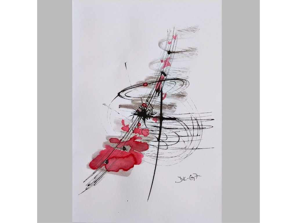 Originální abstraktní perokresba. Tuš - akvarel. 2019